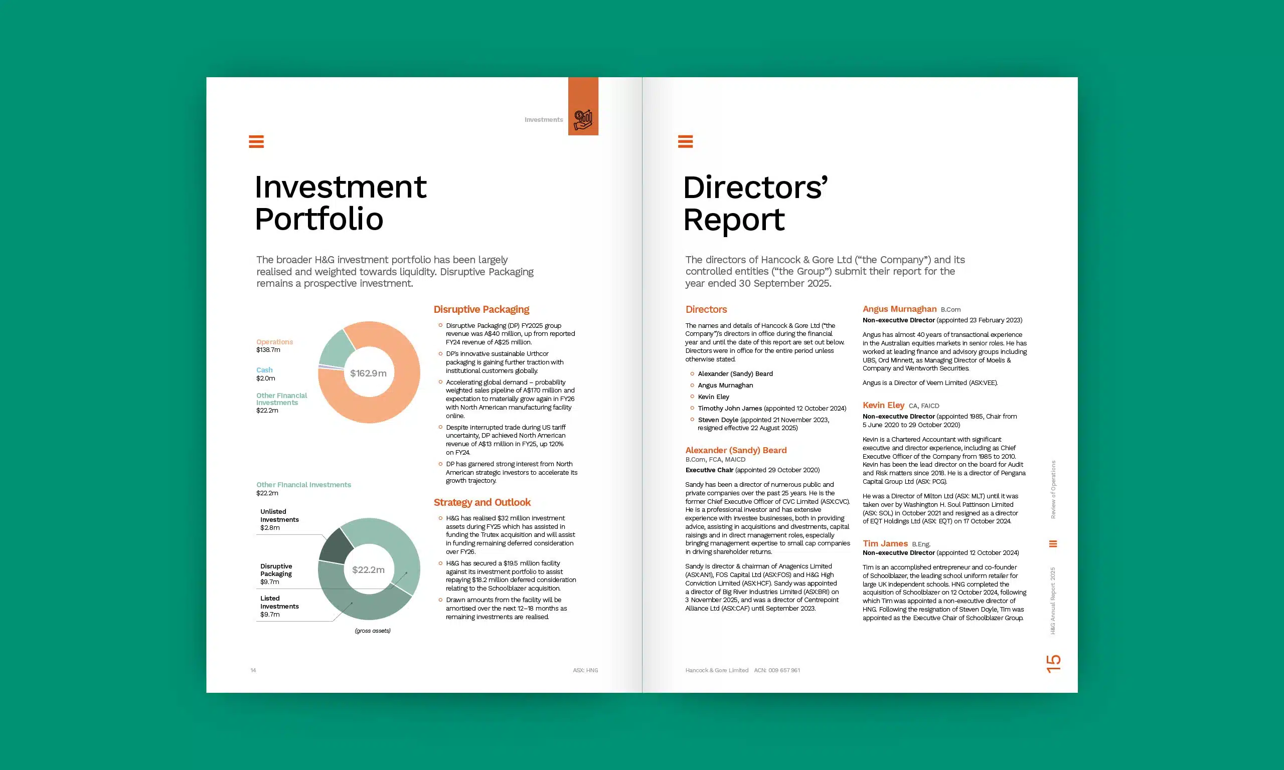 Hancock & Gore is a diversified investment company that exists to deliver superior long-term investment returns to shareholders through a portfolio of operating businesses, a return focused balance sheet and funds management capabilities.